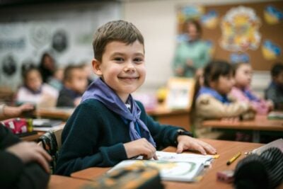Kirkon Ulkomaanapu kunnostaa Ukrainassa sodasta kärsineitä kouluja ja varustelee koulujen pommisuojia niin, että niissä on hyvä opiskella turvallisesti ilmahälytysten aikana. Järjestö kouluttaa opettajia ja koulupsykologeja panostaen erityisesti lasten ja aikuisten psykososiaaliseen hyvinvointiin. Lisäksi kouluihin ja päiväkoteihin toimitetaan muun muassa opiskelutarvikkeita, urheiluvälineitä ja generaattoreita.
