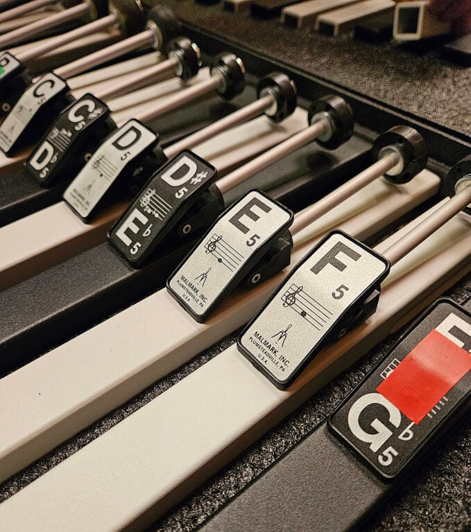 Käteen otettavia metallisia chimeskelloja on monen kokoisia. Lumijoella niitä on 49, eli neljän oktaavin verran.