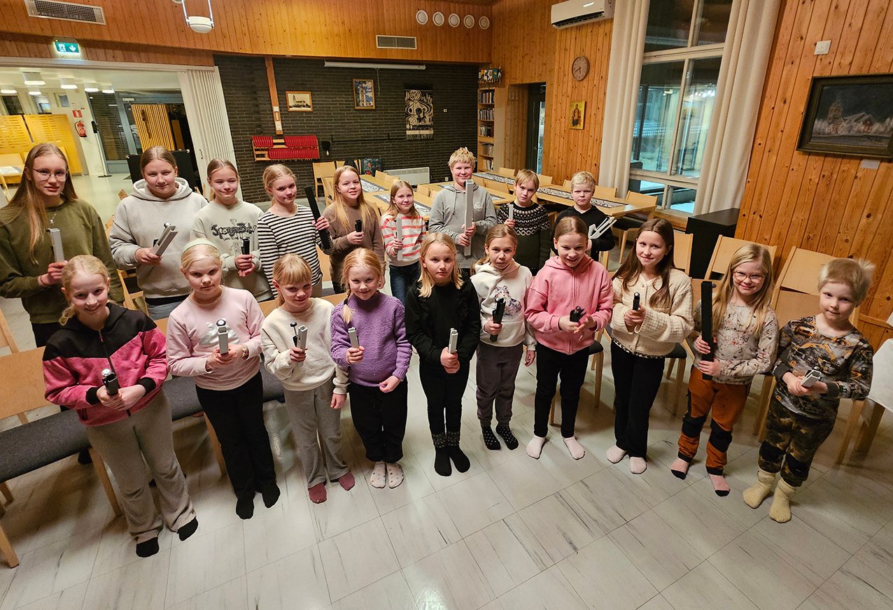 Suvilinnut-kuoron lapset ovat päässeet kokeilemaan kädenheilautuksella soitettavia chimeskelloja. Seuraavan kerran kuorolaiset soittavat niitä perhemessussa 15. maaliskuuta.