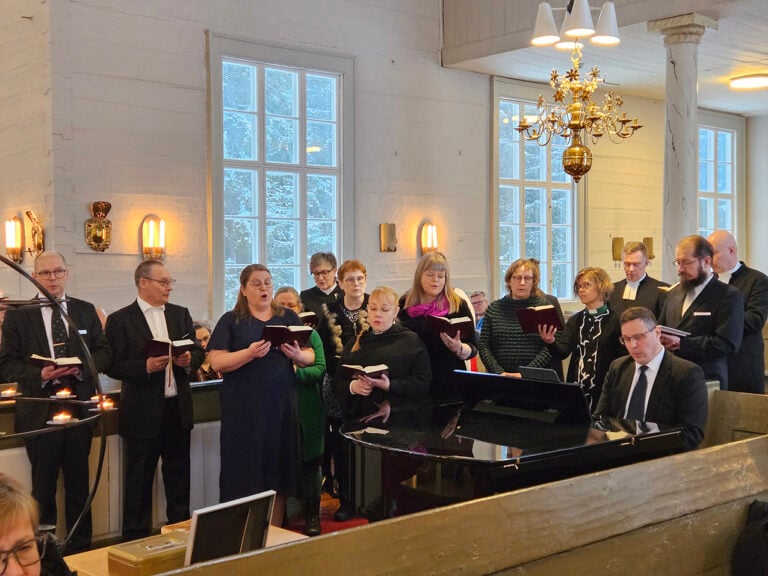 – Se sopii hyvin kirkon työhön, täällähän lauletaan joka päivä, kirkkoherra toteaa hymyillen.