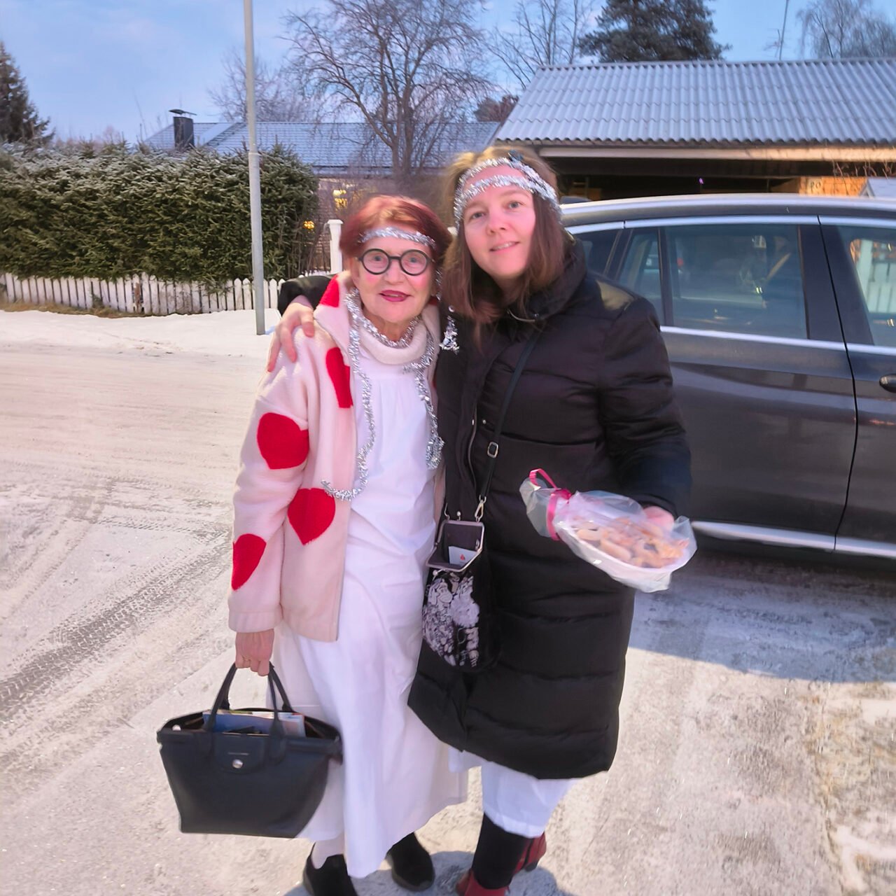 Irjalla ja Terhillä oli viemisinään torttuja laulutervehdyksen lisäksi.