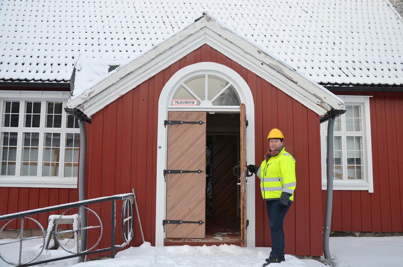 Anneli Salo Kempeleen Vanhan kirkon ovella vuonna 2019.