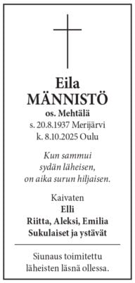 Kuolleet: Pasi Markus Laurila 66, Urpo Henrik Kukkola 89, Eeva Marjatta Kokko 95
