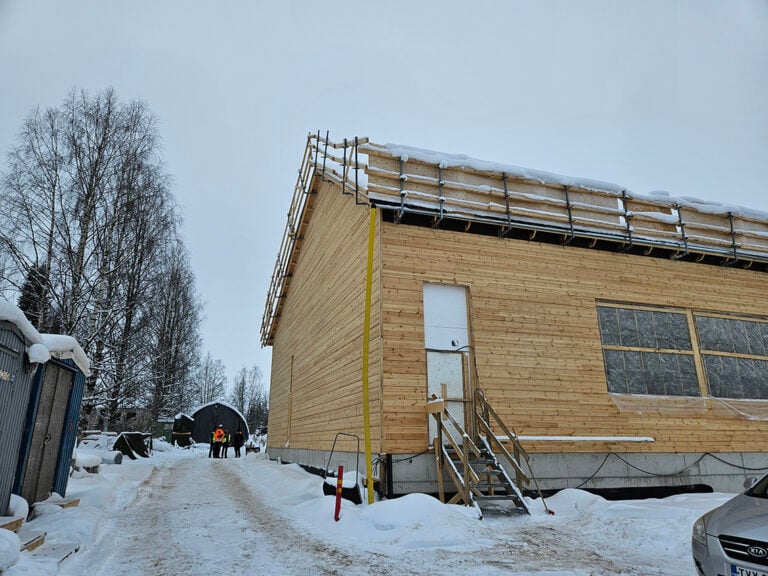 – Tarvittiin 12 rekallista pohjoissuomalaista mäntyä, että saatiin nämä seinät tehtyä, mainitsi Kontiotuote Oy:n myyntipäällikkö Sami Juola.