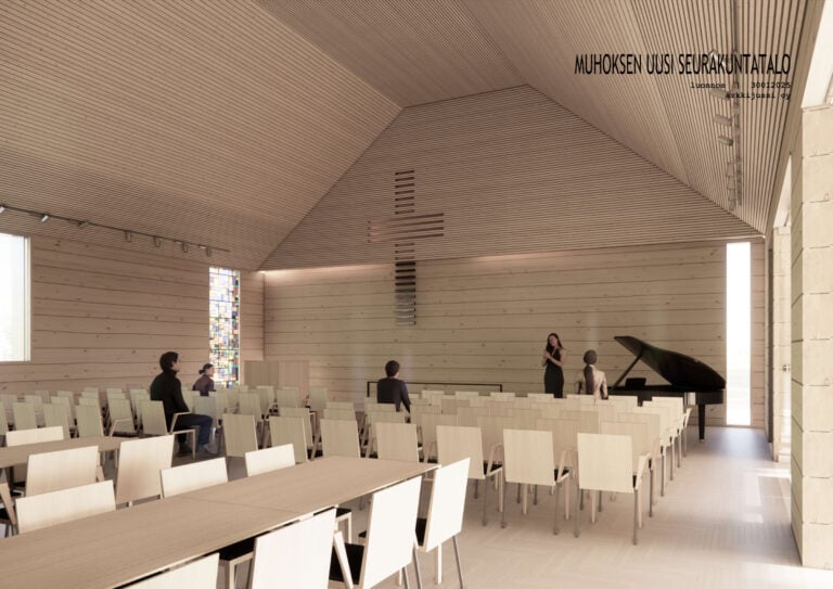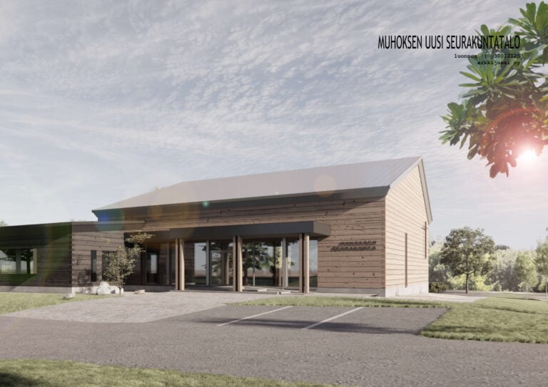 Uuden seurakuntatalon kustannusarvio on 4 907 000 euroa. Rakentaminen on suunniteltu rahoitettavan Muhoksen seurakunnan aikaisemmilla ylijäämillä sekä lainarahoituksella. Kuva: Arkkijussi Oy