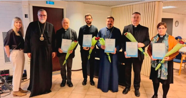 – Erityisen iloinen tästä tunnustuksesta olen vapaaehtoisten maallikoiden ekumeenisen työryhmän puolesta. He suunnittelevat palvelukset ja meidän pappien tehtävä on sitten tulla pitämään palvelus ja saarnaamaan, Koivula kuvaa palkinnon luovuttamisen jälkeen.