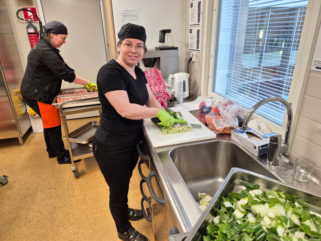 Oulun seurakuntien ruokapalvelut tekee ruoan pääsiäisyön aterioille. Ruokapalveluvastaavat Pirjo Raappana ja Annika Ihme valmistelivat diakonian ruokailua viime viikolla.