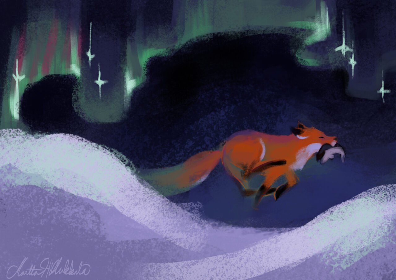 Vain harvan kerrotaan sitä nähneen, mutta öisin kettu iskee kipinää hännällään,