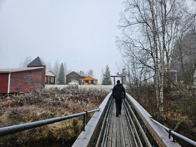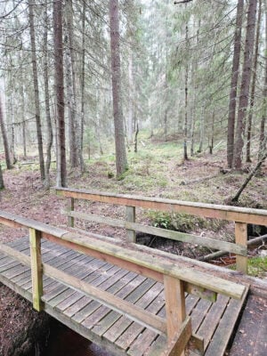 Temmeksen kotiseutumuseon pihasta lähtee kapea riippusilta Temmesjoen yli. Vastarannalla odottaa reilun parin hehtaarin laajuinen aarnimetsäalue.