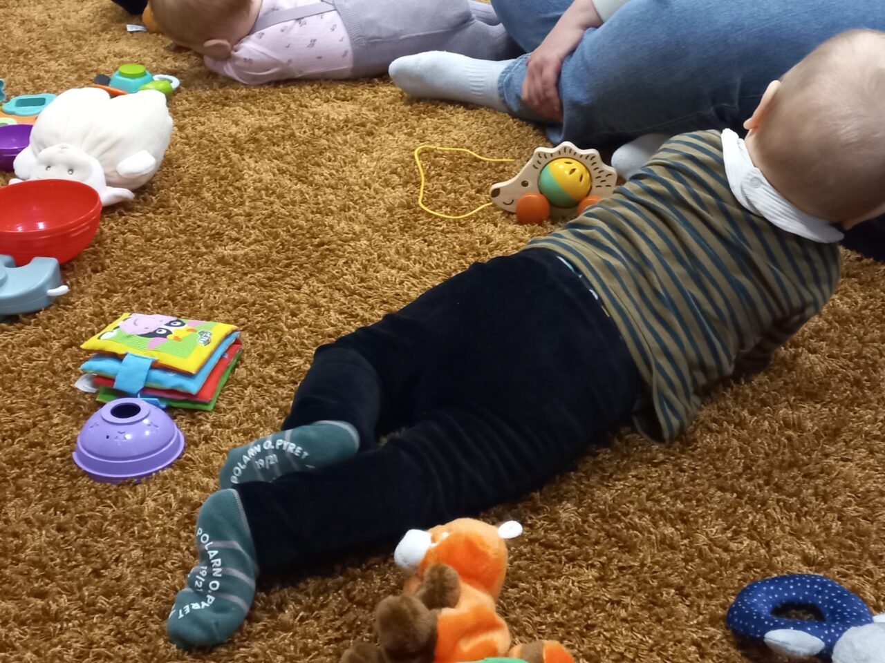 Pehmeän maton päälle on levitetty kasa värikkäitä leluja, korviin leijuu rauhoittava musiikki. Pienet kädet tarttuvat päättäväisesti palloon, jonka sisältä kuuluva kilinä saa aikaan innostunutta jokeltelua ja kikatuksentapaista.
