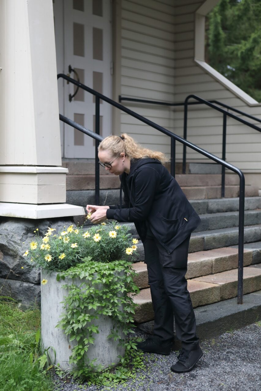 – Talvisin teemme lumityöt ja hiekoitamme pihat ja kulkureitit. Usein aikataulut ovat kiireisiä, ja tilaisuuksia voi olla yhtä aikaa jokaisessa kiinteistössä. Silloin hyvällä organisointikyvyllä mutta erityisesti hyvällä tiimillä on suuri merkitys työn sujuvuuteen, kertoo Holmi.
