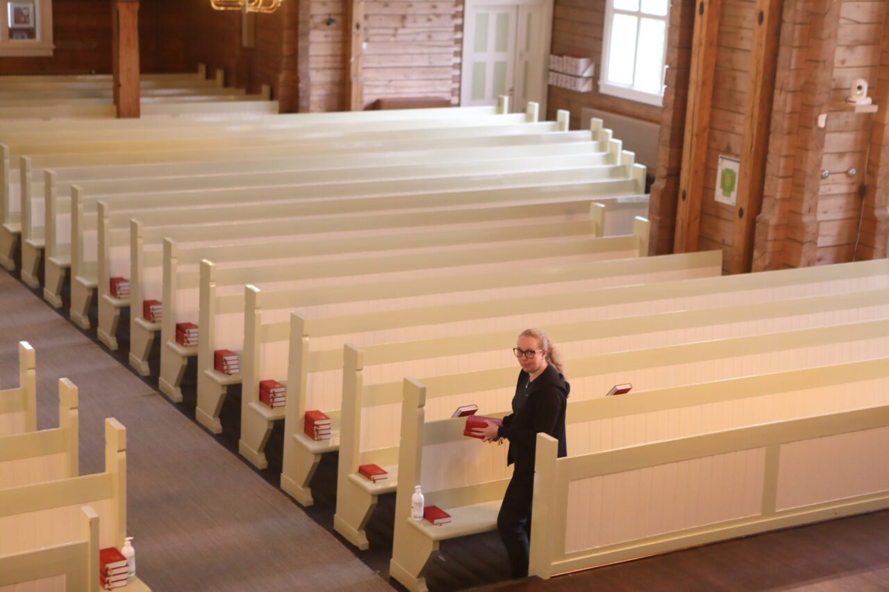 – Kiillotamme hopeaesineet, teemme alttarikimput, kirjaamme toimituksiin osallistuneiden väkimäärän, hankimme tarjottavat muun muassa kirkkokahveille, huolehdimme albojen ja arkunkantoliinojen pesusta ja silityksestä, pidämme kirjaa kylmälaitteiden lämpötiloista, testaamme paloilmoittimia kuukausittain ja niin edelleen, Holmi luettelee.