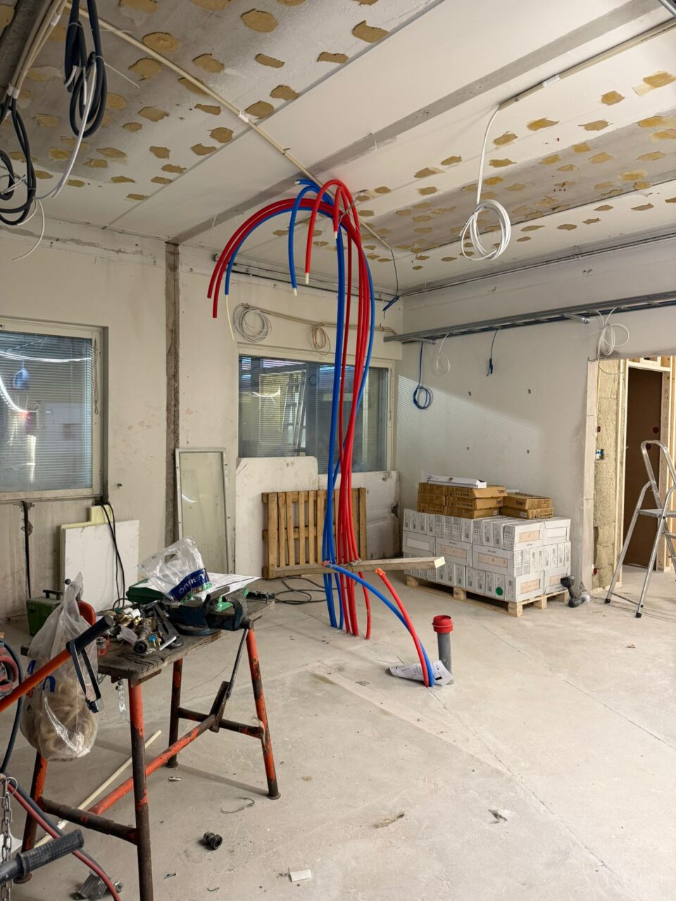 Rakentamistöitä tehdään nyt myös toimitalon kakkoskerroksessa.