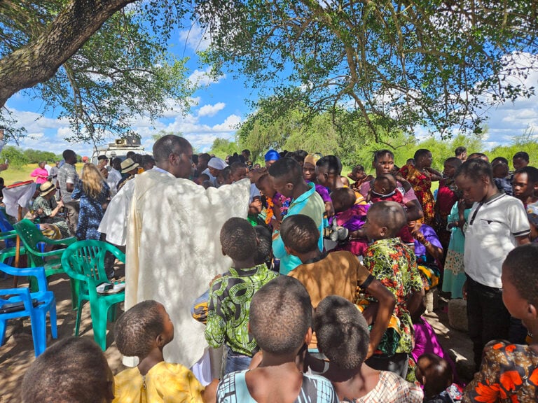 Matkallamme pääsemmekin näkemään jokaviikkoista jumalanpalvelusta juhlavamman tilaisuuden. Victoriajärven itäisen hiippakunnan apulaispiispa Stephano Lingh’wan saapuu Mwanangwan kirkkoon kastamaan jumalanpalveluksen yhteydessä uudet seurakuntalaiset.