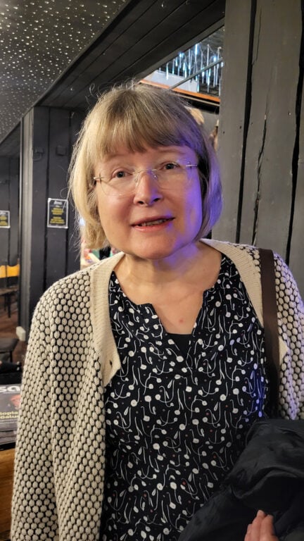Ritva Laine oli juhlilla ensimmäistä kertaa ystävän houkuttelemana. Hänelle lähetystyö on tärkeä vähempiosaisten auttamisen muoto. – Aina, kun kirkossa on kolehti lähetystyölle, sydän sykähtää.
