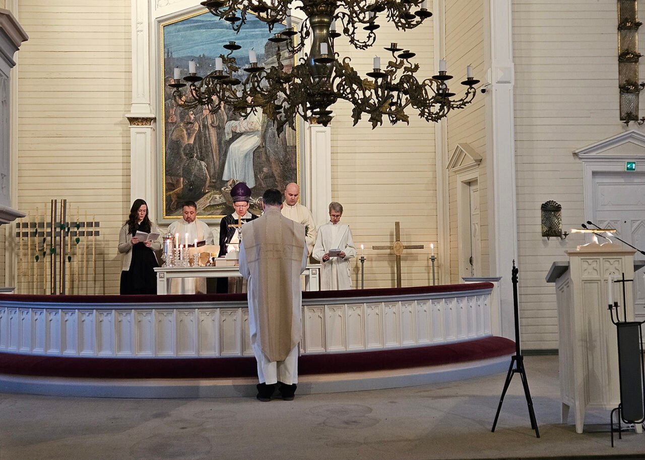 Tyrnävän seurakunnassa vietettiin piispanmessua 11. tammikuuta, kun piispa Jukka Keskitalo saapui asettamaan Matias Muholan kirkkoherran virkaan.