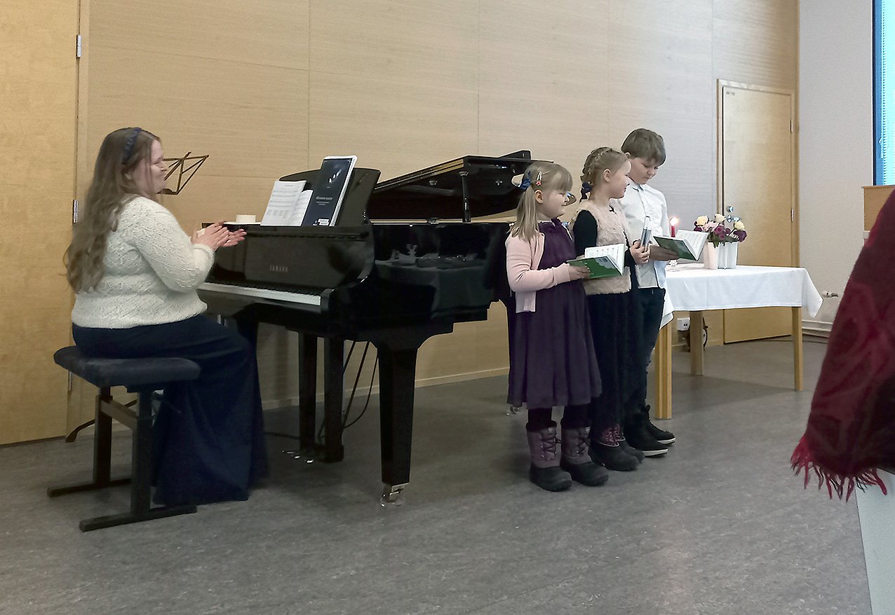 Juhlassa kuultiin tervehdysten lisäksi musiikkiesityksiä. Matias Muhola lauloi vaimonsa Emmi Muholan säestämänä ja pariskunnan kolme lasta hellyttivät juhlassa mukana olleet seurakuntalaiset ja vieraat omalla laulullaan.