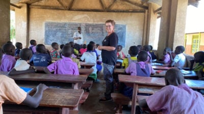 Lähtö Ugandaan koitti helmikuussa 2025. Väihkönen sai kollegakseen vantaalaisen opettajan Hagos Berhanen.