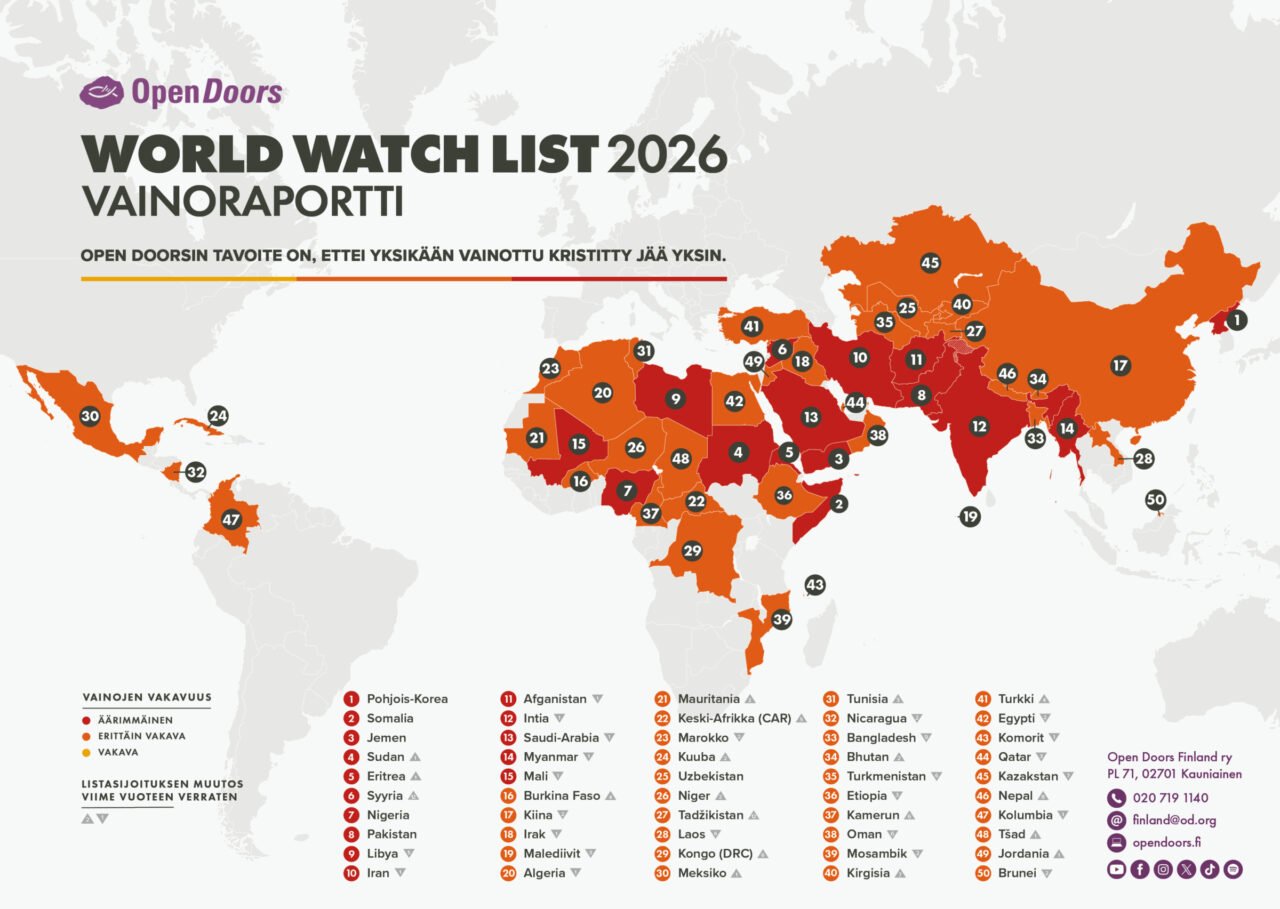 Kansainvälinen Open Doors -järjestö julkaisee vuosittain vainoraportin 50 maasta, joissa kristityt kokevat vakaumuksensa vuoksi eniten vainoa.