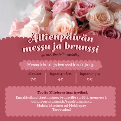• Ke 29.4. ja ke 6.5. klo 9.30–11 Kastellin kirkko.