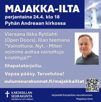 Rauhanyhdistyksen alueseurat ti 21.4. klo 18 Karjasillan kirkko.