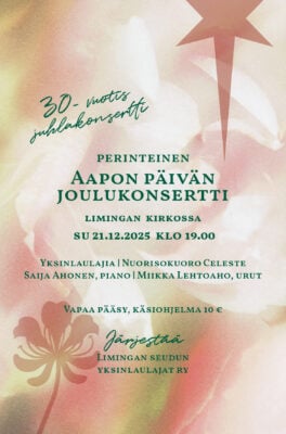 Äijäpajan Kauneimmat Joululaulut to 4.12. klo 9.30 pappilassa. Lauletaan, kahvitellaan ja poristaan kuusista.