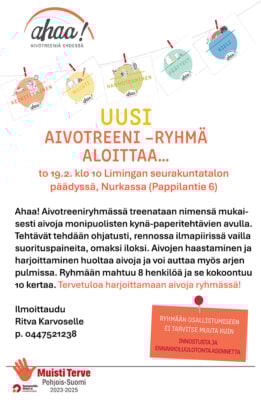 Muskari 4–5-vuotiaille ti 3.2. ja 10.2. klo 17.15 Vanamossa. Mukaan mahtuu vielä. Lisätietoja Anja Sivulalta, p. 044 752 1223.