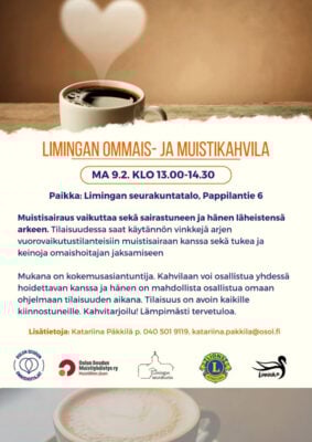 Hyvän mielen päiväkahvit ti 10.2. klo 12 Avarassa.