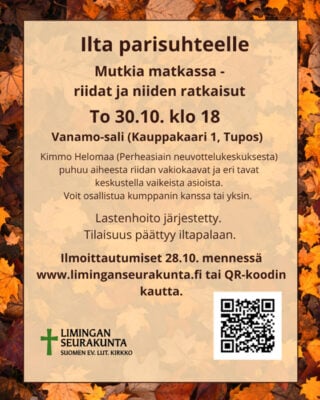 Tapahtuma toteutuu, mikäli ilmoittautuneita on vähintään viisi. Ilmoittaudu mukaan ma 13.10. klo 16 mennessä: