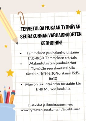 • Alakoululaisten puuhakerhot Tyrnävän srk-talolla