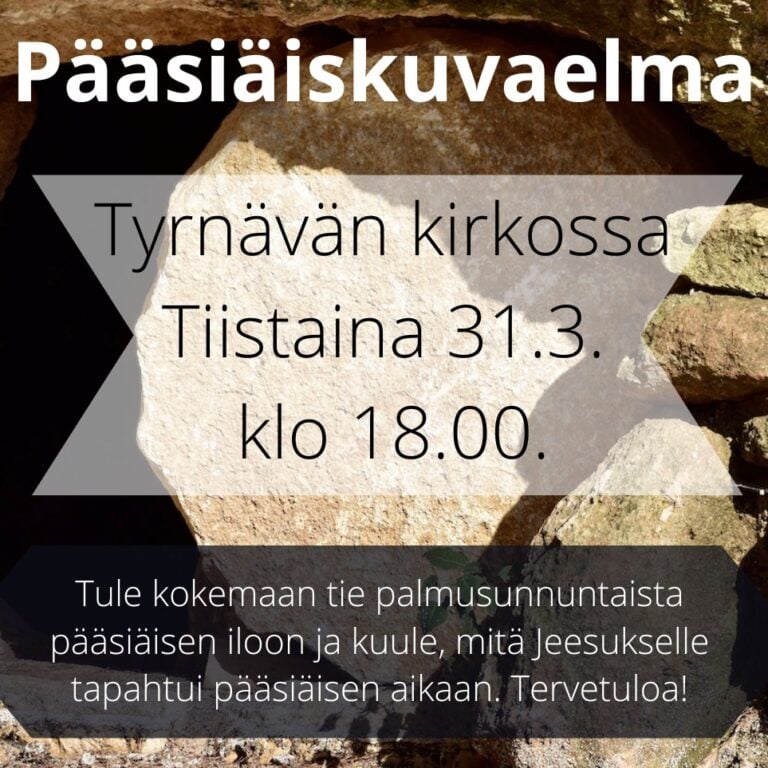 Pääsiäiskuvaelma kaikelle kansalle ti 31.3. klo 18 Tyrnävän kirkko. Ks. ilmoitus.