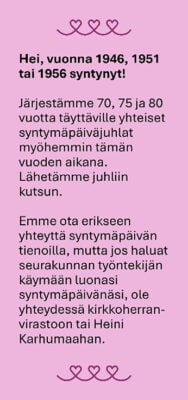 Eläkeliiton kokoontuminen ti 24.2. klo 12 seurakuntasalissa.