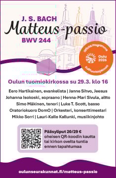 Kaiken kansan viikkomessu to 24.2. klo 13 Tyrnävän kirkko. Matias Muhola, Piritta Aatsinki, Salme Kinnunen.