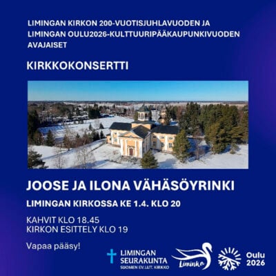 Hiljaisen viikon musiikki-ilta ”Ristin alla laulamalla” ke 1.4. klo 18 Tyrnävän kirkko. Yhteisvirsiä, kuoromusiikkia ja iltahartaus. Mukana Matias Muhola, Salla Kujala, lauluyhtye Leivo. Tilaisuutta ei striimata. Vapaa pääsy, lämpimästi tervetuloa!