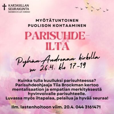 • To 9.4. ja 16.4. klo 9–11: Tiina Huurre (ratkaisukeskeinen lyhytterapeutti), p. 040 680 5543.