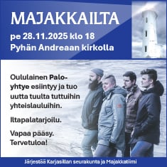 • Su 23.11. klo 18 kirkossa gospelmessu ja lähetyslentäjien toiminnan esittelyä. Toimittaa Seija Helomaa, kanttorina Tiina Saukkoriipi-Haapala.