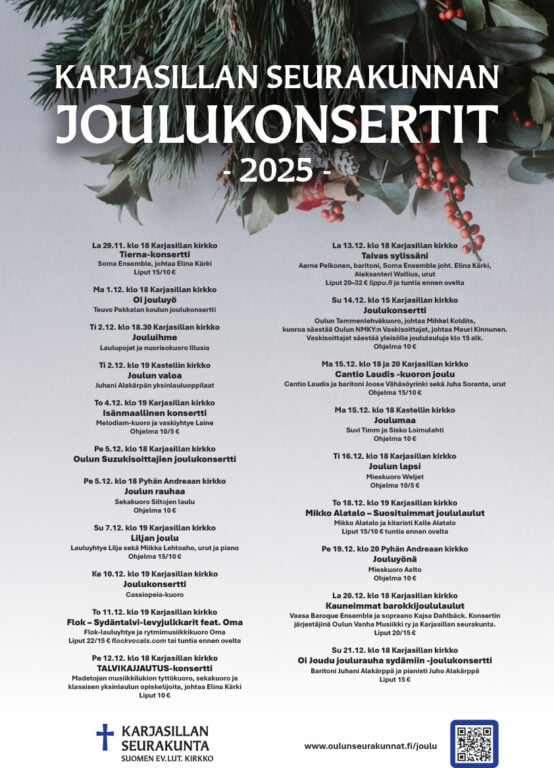Joulun lapsi -konsertti su 7.12. klo 19 Tyrnävän kirkko. Vapaa pääsy. Käsiohjelma 10 €.