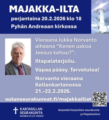 Tuhkakeskiviikon iltakirkko ke 18.2. klo 19 Karjasillan kirkossa. Toimittavat Jonne Pirkola ja Pekka Tuomikoski, kanttorina Riitta Ojala. Musiikissa avustaa Naiskuoro Kaarna.