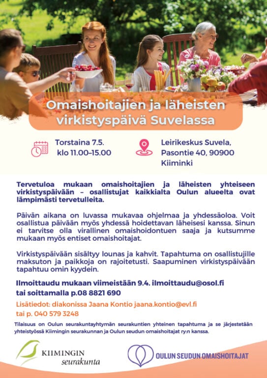 Ilmoittautuminen alkaa 1.3. Ilmoittautumiset: oulunseurakunnat.fi/tapahtumat