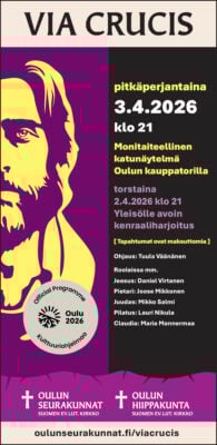 Pääsiäiskuvaelma kaikelle kansalle ti 31.3. klo 18 Tyrnävän kirkko. Ks. ilmoitus.